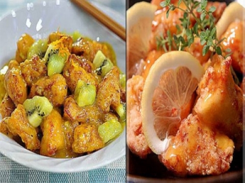 將炸好的雞丁和醬汁充分拌好,可以切一些柳橙皮細絲,撒在雞丁上,顏色更好看。