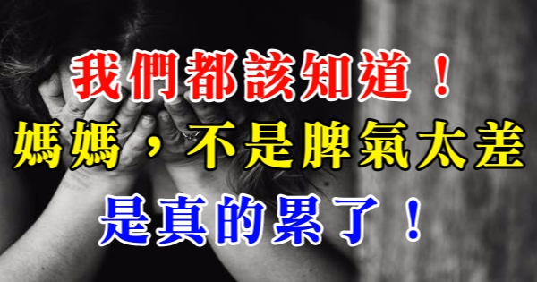 我們都該知道!媽媽,不是脾氣太差,是真的累了!