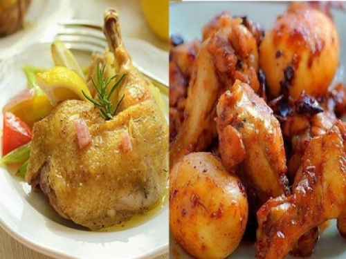 【迷迭香檸檬烤雞腿】材料:雞腿2個,洋蔥1/2個,檸檬半個,新鮮的迷迭香2小枝,橄欖油30ml,鹽,黑胡椒;做法:1. 洋蔥去皮切小丁,迷迭香撕成小段一起放在大碗中。取一半檸檬,將檸檬汁擠入後,檸檬切塊也放入大碗中。加入橄欖油。加鹽,磨入黑胡椒;2. 將雞腿洗凈擦乾水分後放入大盆中,揉捏一會,讓調料分布均勻雞腿更入味。蓋保鮮膜,放入冰箱腌制24小時後取出;3. 剪一大張鋁箔紙,將雞腿和腌料放入。四邊捏起,將雞腿包好,放入預熱好200度的烤箱中層烤20分鐘後打開鋁箔紙再烤15分鐘即可~