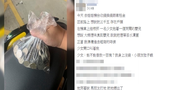 「能借我100元嗎?」 台中少女被「男友趕出門,路邊抱哭嬰」 他掏3500暖哭眾人