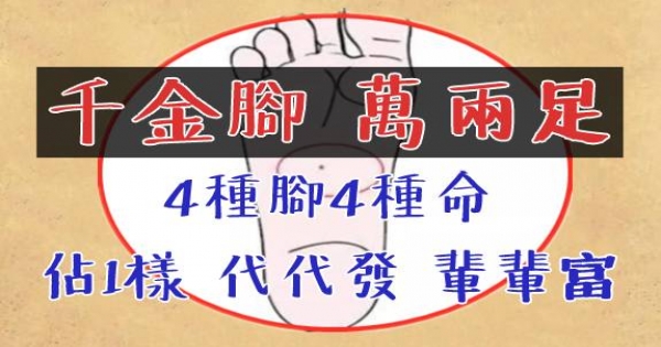 「千金腳」、「萬兩足」,4種腳4種命,佔1樣,代代發,輩輩富!
