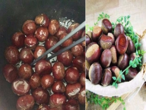 註:用電飯煲做「糖炒栗子」的好處,方便快捷,省時省力,而且栗子軟糯香甜,美味可口。栗子,也具有養胃健脾、補腎強筋等恭喜,在滋補方面,可與人參、黃芪、當歸等媲美。可以治療反胃、吐血、腰腳軟弱、便血等症,是不可多得的一味「良藥」。
