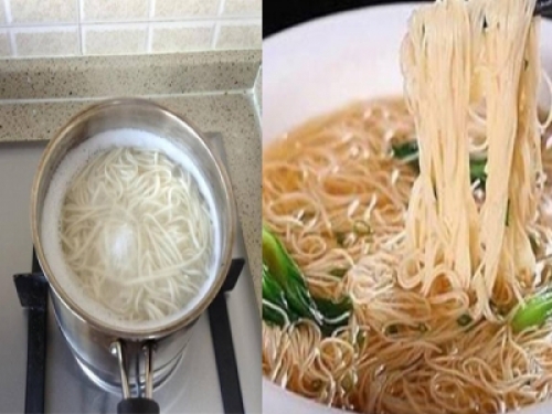 煮濕切麵和自己擀的麵條時則需水大開時下麵,然後用筷子向上挑幾下,以防麵條粘連。