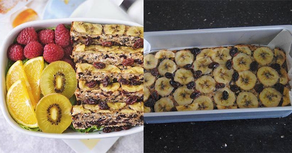 9,最後再放上一層香蕉片和溫水浸泡過的葡萄乾