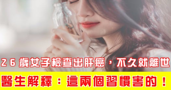 大家好,我是健康一點靈小編葡萄!今天要來說說關於「26歲女子檢查出肝癌,不久就離世!醫生解釋:都是這兩個習慣害的!」的事!不知道大家對於這個有多了解呢?一起來看看吧!