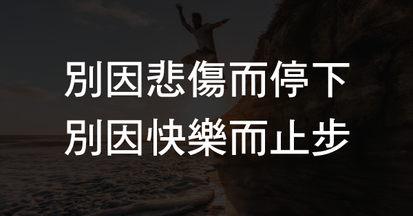 別因悲傷而停下,別因快樂而止步
