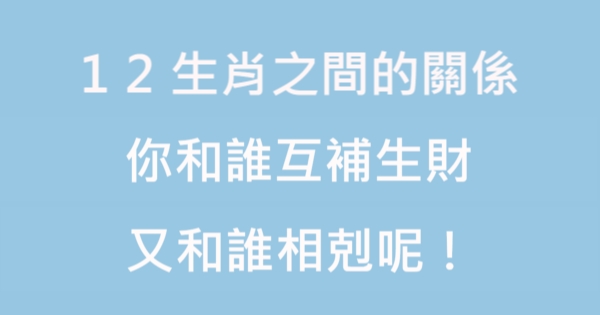 各位讀者安安阿~~我是有錢人這麼想小編Choco!今天要來說說關於「12生肖之間的關係,你和誰互補生財,又和誰相剋呢!」,不知道大家有沒有興趣呢!一起來看看吧!