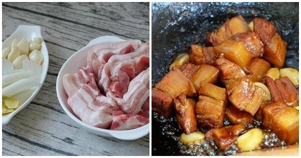 14、鍋中水量燉的只有一半時,放入大蒜瓣,和紅燒肉一起燉過的蒜瓣特別好吃。