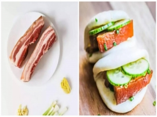 五香五花肉可以放在餅或饅頭裡一起吃,一塊香氣十足的五花肉,搭上清爽的黃瓜片,原來吃饅頭也可以這麼幸福!