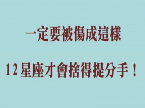 大家好,我是 Ant 今天來跟你說說 一定要被傷成這樣,12星座才會捨得提分手!吧!讓我們來看看!