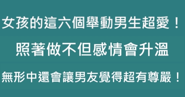 女孩的這六個舉動男生超愛!照著做不但感情會升溫,無形中還會讓男友覺得超有尊嚴!