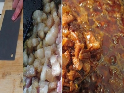 1、臊子肉一定要帶肉皮,不能太瘦。