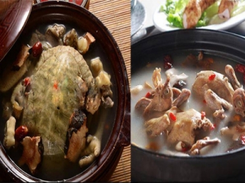 食材:土茯苓15克、草龜一隻、紅棗10克、瘦肉50克、生薑10克、適量清湯、鹽4克、紹酒3克、胡椒粉少許