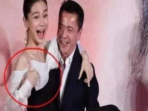 最刺激的穿幫:華誼老總王中磊抱起Angelababy時,瞬間胸前衣服垮了!網友:遮都來不及遮!
