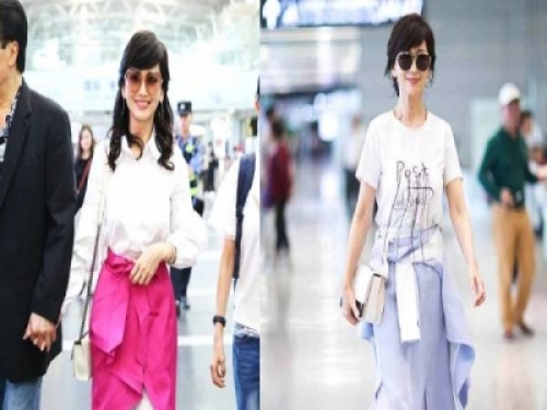 早前趙雅芝出現在機場,她身穿露單肩格子上衣搭配黑色前方開叉微喇叭褲,一雙當季流行的黑色一帶式高跟涼鞋,完全沒有62歲的感覺,甚至有點違和有木有...