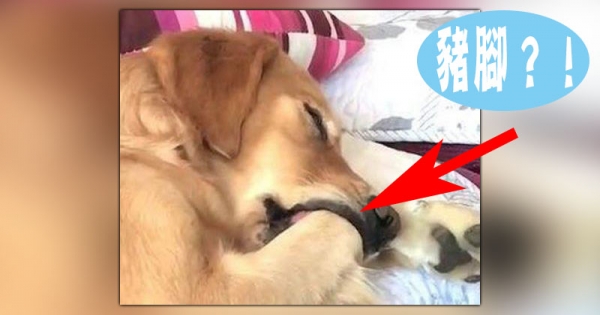 夢裡的金毛犬嘗試著舔了1口爪,發現這是真的豬蹄