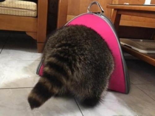 根據今日頭條的報導,是這個窩太小了,不是我太胖喔!飼主Amelie Lin看天氣涼了,便為家裡2隻浣熊公子購置新窩。不料,胖胖的「歐戀」擠進去準備試躺時,小窩竟然「炸開」,圓滾滾的屁屁整個露在外面,氣得牠怒瞪馬麻。