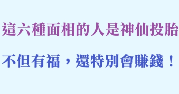 大家好,我是有錢人這麼想小編Sophia!今天要來說說關於「這六種面相的人是神仙投胎,不但有福,還特別會賺錢!」的事!不知道大家對於這個有多了解呢?一起來看看吧!