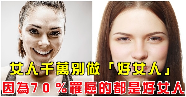 腫瘤專家的大發現:女人千萬別做「好女人」,因為70%罹癌的都是好女人!