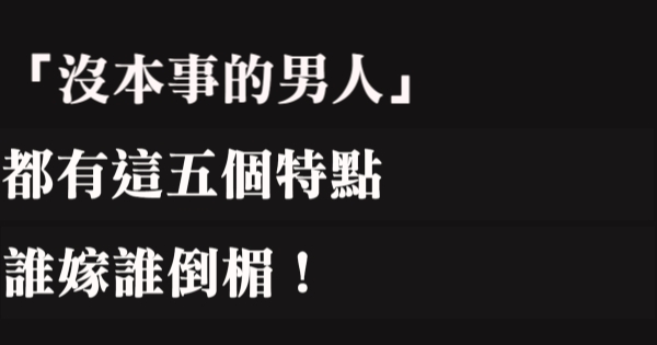 大家好,我是有錢人這麼想小編eva!今天要來說說關於「「沒本事的男人」,都有這五個特點,誰嫁誰倒楣!」的事!不知道大家對於這個有多了解呢?一起來看看吧!