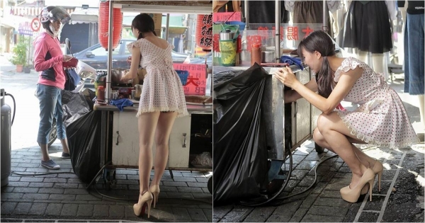 這幾天有個很紅的麵線攤老闆娘,穿超短裙顧攤真的太犯規了!