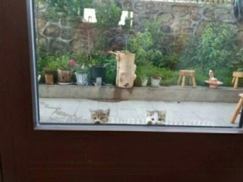 自從貓咪出去玩過之後,家門口每天都會出現兩隻小貓,知道牠們的目的後主人立馬融化!喵:快點粗來玩~