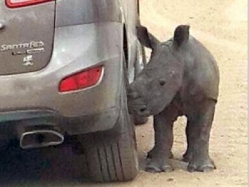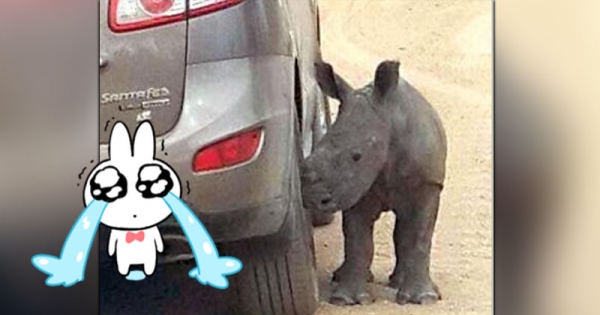 小犀牛不停用頭去磨蹭車輪,久久不願離開!調查後才發現真相太殘忍!讓工作人員們是又氣又悲,連這麼小的犀牛也不放過QQ