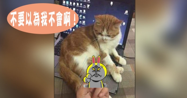 貓咪趴在電腦上一動也不動,主人生氣的對牠做出這個動作!!結果喵大激動的反應讓大家笑到掉淚!喵:不要以為只有你會!