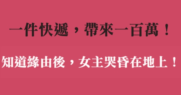 大家好,我是有錢人這麼想小編Choco!今天要來說說關於「一件快遞,帶來一百萬!知道實際緣由後,女主哭昏在地上!」的事!不知道大家對於這個有多了解呢?一起來看看吧!