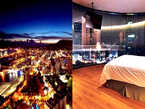 2016年開始試營運的巨蛋旅店Hotel R14,最有名的巨蛋景觀房,180環繞視野圍繞著床鋪,一睜眼就能看見夜高雄的美...一望無際的視野,絢麗的夜景就在腳下,絕對是愛看夜景的你來到高雄住宿首選!