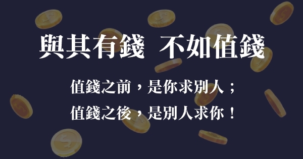 與其有錢,不如值錢!值錢之前,是你求別人;值錢之後,是別人求你!