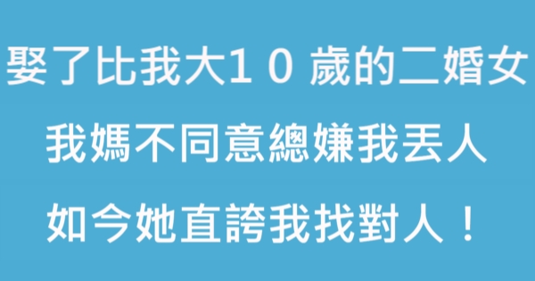 大家好,我是 Choco 今天來跟你說說 娶了比我大10歲的二婚女,我媽不同意總嫌我丟人,如今她直誇我找對人!吧!讓我們來看看!