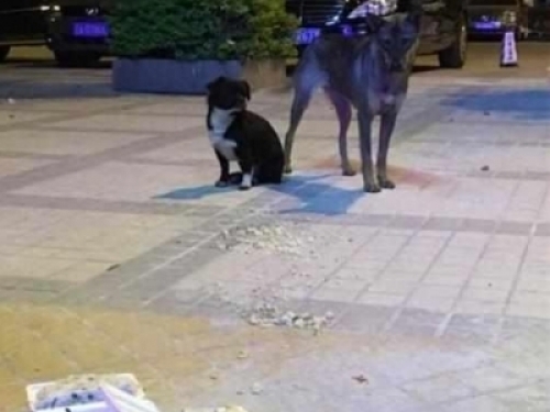 根據今日頭條的報導,一名網友在晚上加班後,飢腸轆轆來到公司附近的一個餐飲街買了一個烤腸先吃著,結果這個時候他看到了兩隻狗跑過來,眼巴巴的看著牠。這兩隻狗身上臟兮兮的,一看就是流浪狗。