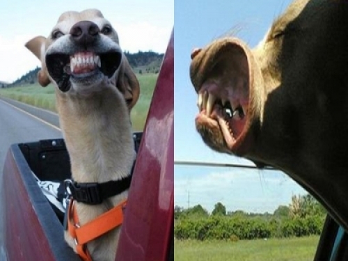 (圖多)一秒變「血盆大口」!帶狗狗出去兜風,牠們開心的把頭伸出窗外,被風吹出的造型讓人笑翻!