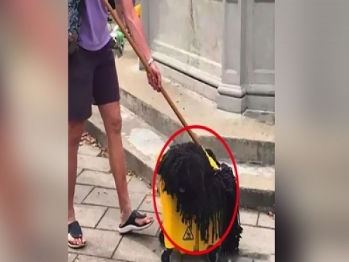 哈哈!原來這個拖把也是一隻狗狗「偽裝」的!