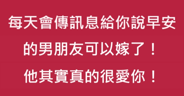 看來會每天早上傳訊息給妳的男人符合了所有適合結婚男人的要求~