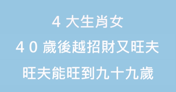 大家好,我是Choco 今天來跟你說說 40歲後越招財又旺夫,旺夫能旺到九十九歲的4大生肖女!吧!