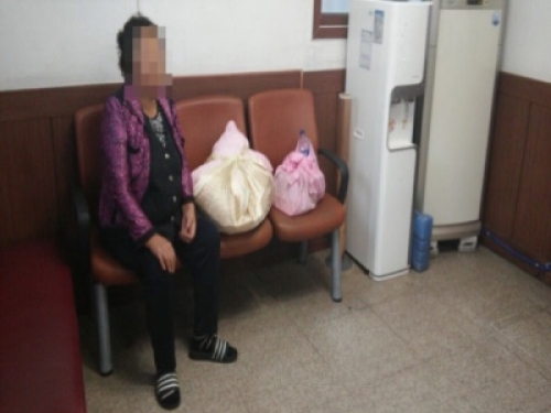到了醫院後,老太太趕緊打開她一直緊抓著的袋子,原來――裡面裝著已經冷掉的海帶湯、蔬菜和白飯。