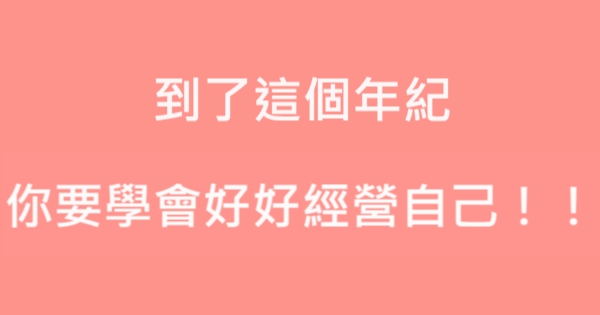 看完後是不是覺得CA小編在有錢人這麼想分享的勵志故事文章很好呢?想看更多好文,或是喜歡有錢人這麼想的文章的話,可以按讚追蹤有錢人這麼想並分享這篇「到了這個年紀,你要學會好好經營自己!」出去給大家一起看看喔!