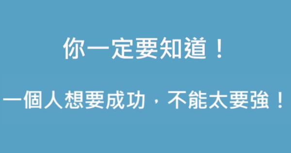 看完後是不是覺得CA小編在有錢人這麼想分享的職場能量文章很好呢?想看更多好文,或是喜歡有錢人這麼想的文章的話,可以按讚追蹤每天來些正向能量快按讚並分享這篇「你一定要知道!一個人想要成功,不能太要強!!」出去給大家一起看看喔!