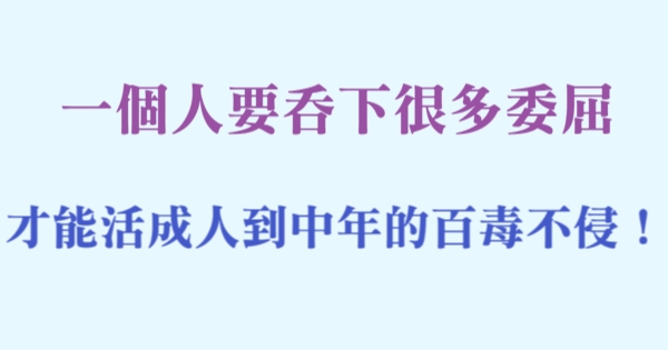 我們都該知道!一個人要吞下很多委屈,才能活成人到中年的百毒不侵!