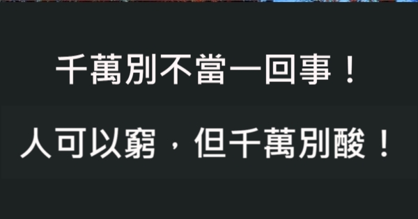 千萬別不當一回事!人可以窮,但千萬別酸!!!