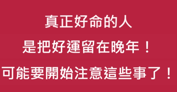 可能要開始注意這些事了!真正好命的人,是把好運留在晚年!