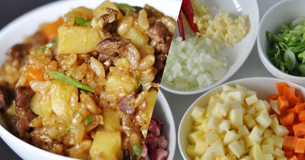 土豆牛肉燜飯:只需忙活10分鐘,切切菜、淘淘米,開火炒一炒,放進電鍋裡燜。然後就到客廳裡吹吹空調,看看電視,等到胃口醒過神來,飯也得了!