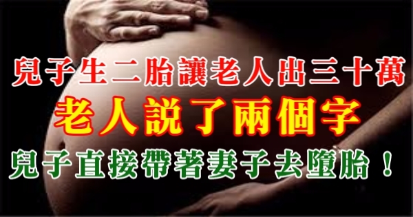 大家好,我是小寶貝媽媽經小編Ant!今天要來說說關於「兒子生二胎讓老人出三十萬,老人說了兩個字,兒子直接帶著妻子去墮胎!」的事!不知道大家對於這個有多了解呢?一起來看看吧!