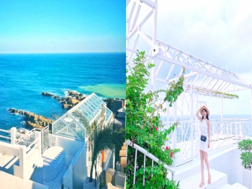 位於新北瑞芳的這間超希臘風格的民宿,一進到一樓大門,閃耀在陽光下的玻璃屋與一整條純白色的階梯長廊,旁邊種滿了各種綠色植物,往旁邊一看直接看到整片的無敵海景!還沒進到房間心情就已經開始度假放鬆啦~