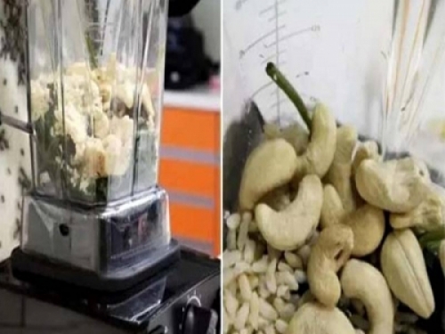 材料:(成品約750cc)熟地瓜葉150g、薑片6g、味噌1大匙、糙米飯50g、生腰果50g、熱開水500c.c.