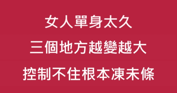 單身的女人,總是一個人面對冰冷的屋子,時間久了,難免會感到空虛寂寞,無法控制自己,於是,這三個地方,不知不覺就變大了……