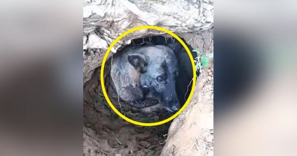 原來這隻小土狗自己打了一個洞,以這樣的方式陪著逝去的主人!