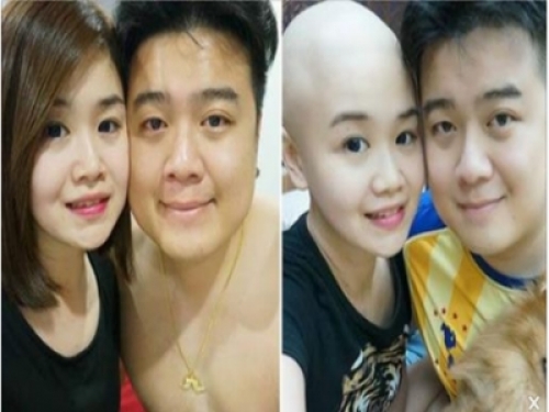 正妹老婆罹癌「變光頭掉眉毛」老公不離不棄,把老婆當公主養半年癌細胞全死光!